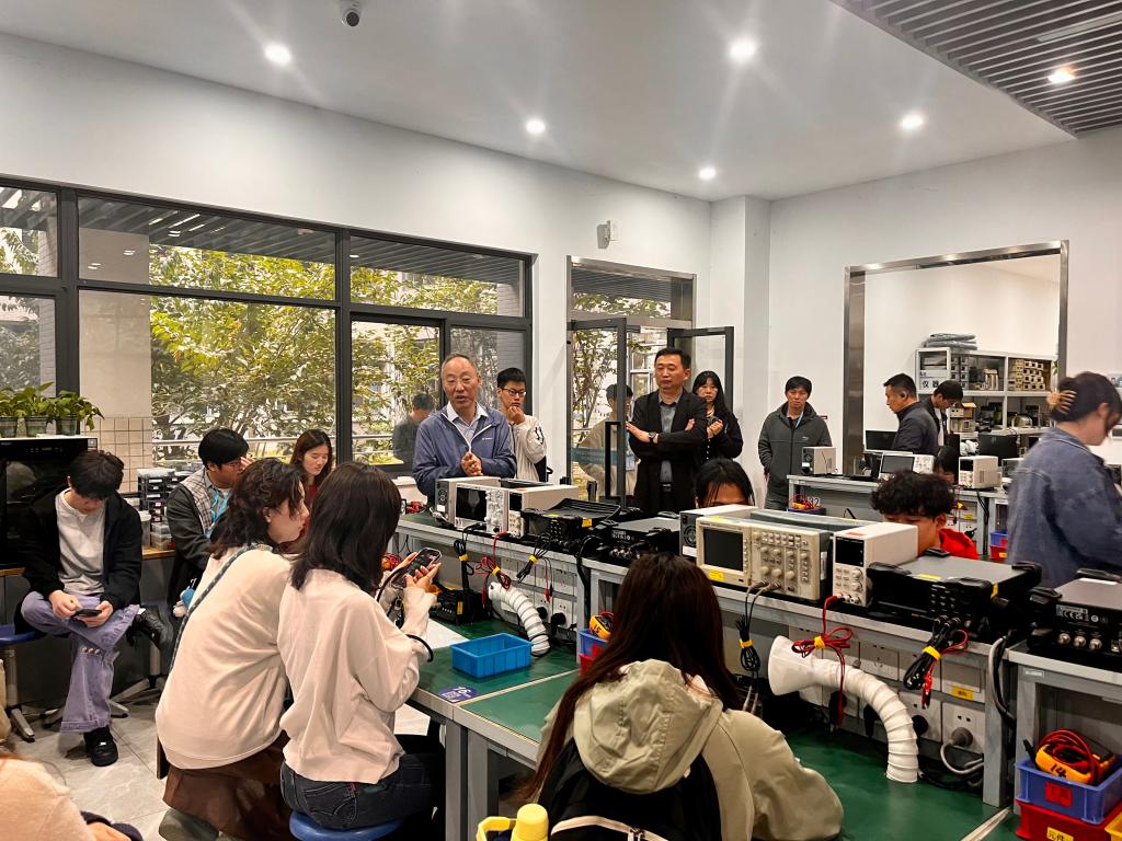 随后,师生们前往物联网工程学院大学生创新实践基地,参观智能车俱乐部、电子设计开放实验室等,近距离接触前沿科研成果与创新实践项目,亲身感受了我校学生科技创新的魅力与活力。