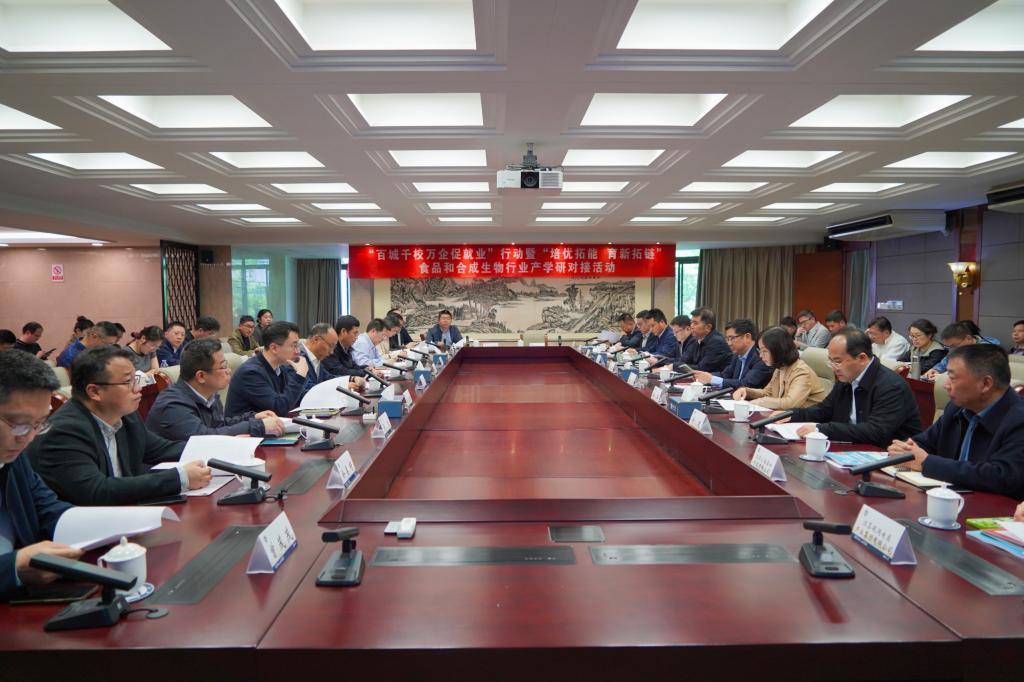 4月8日下午,由省工商联、省教育厅、省人社厅主办,江南大学、无锡市工商联承办,江苏省食品科学与技术学会协办的“百城千校万企促就业”行动暨“培优拓能 育新拓链”食品和合成生物行业产学研对接活动在行政楼B305会议室举行。省政协副秘书长、省工商联副主席胡明,省教育厅学生处二级调研员金剑,省劳动就业管理中心副主任吴昊,无锡市工商联副主席季超等出席会议,校党委常委、副校长戴月波致欢迎辞。来自省内41家食品、合成生物领域企业的负责人,食品学院、生物工程学院相关科研团队负责人和教师代表参会。校党委常委、统战部部长朱飞主持对接活动。