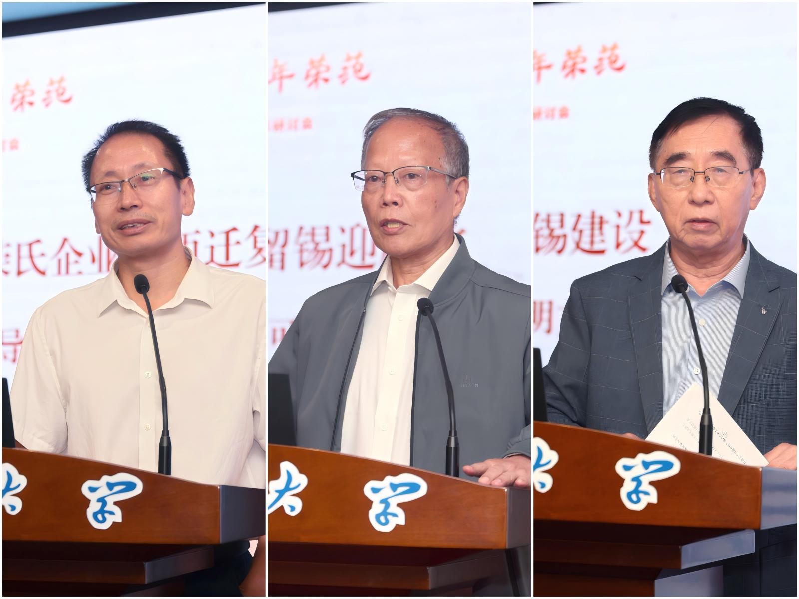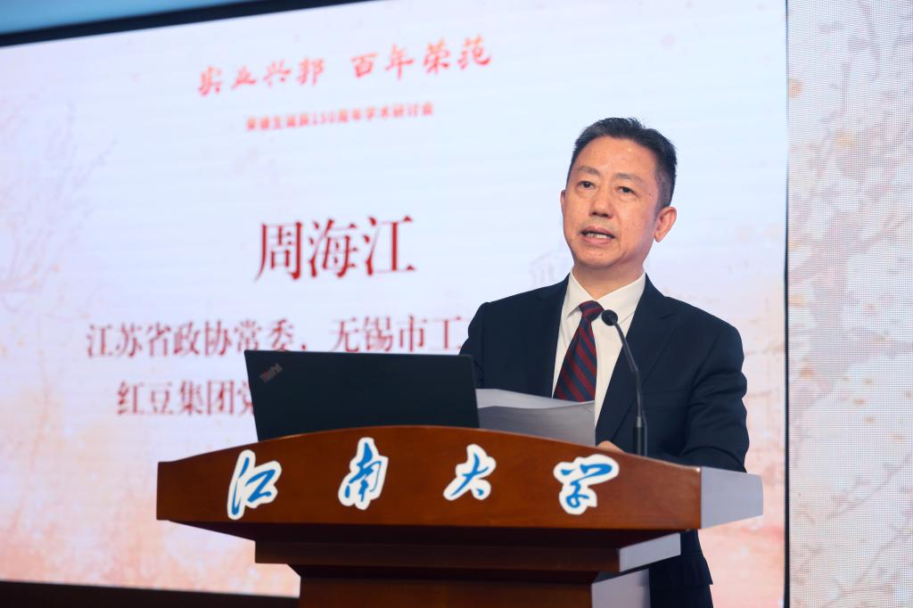 专家学者发言环节中,江南大学历史研究院刘大禹教授,无锡荣德生企业文化研究会专家汤可可、夏明文分别以《利益与抉择:荣德生与战时荣氏企业的西迁复工》《荣德生的1949:留锡迎解放》《荣德生与大无锡建设》为题,结合历史资料分析和时代价值挖掘,进一步诠释了荣德生的拳拳爱国之心和实业兴邦精神。周海江在发言中提出,新时代企业家要弘扬荣德生先生的家国情怀和坚韧不拔的创业精神,勇于开拓敢为人先,做到胸怀报国志、一心谋发展,守法善经营、先富促共富。