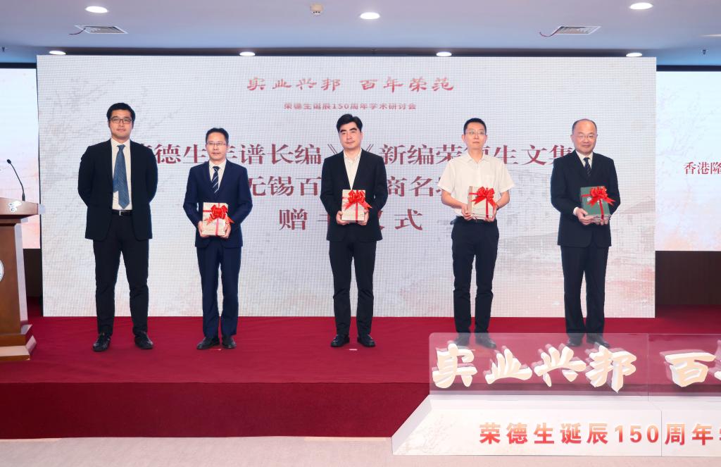 研讨会期间,香港隆源企业控股有限公司董事总经理、香港无锡商会会长荣明棣向无锡市档案史志馆、江南大学图书馆及企业家代表唐冠玉、邵金华、赠送了《荣德生年谱长编》《新编荣德生文集》《无锡百年工商名城》等书籍。与会人员观看了纪录片《荣德生》,并参观了“爱国、创业、人生——荣德生图片展”和相关教育基地。