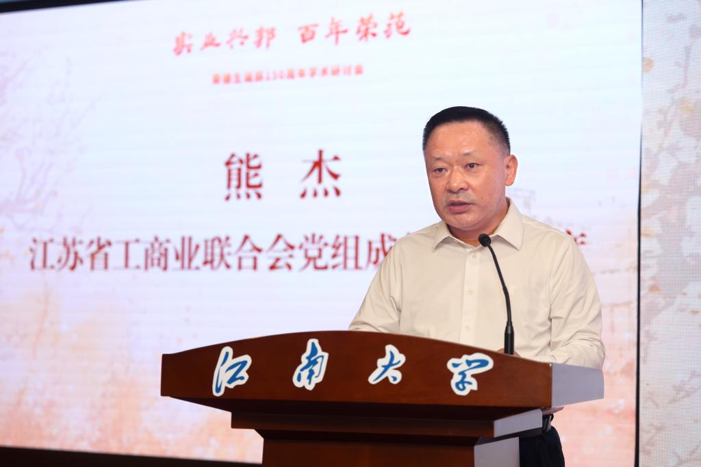 熊杰代表江苏省工商联、江苏省总商会对会议的举行表示祝贺,并高度评价了荣德生先生作为民族工业奠基人的历史贡献。他指出,正是有了以荣德生先生为代表的一大批锡商不懈接续奋斗,推动无锡成为中国民族工业和乡镇企业的摇篮、苏南模式的发祥地,以及新时代的长三角中心城市和全省高质量发展的重要压舱石。他表示,今天这一场穿越时空的对话,将进一步推动广大锡商传承荣德生先生实业报国的薪火,不断激发新时代无锡民营经济的创新创造争先领先之动力。他希望企业家始终牢记习近平总书记的殷切希望和殷殷嘱托,铸牢信念之魂,做爱国敬业的领头雁;激发创新之源,做敢为人先的排头兵;扛起担当职责,做促进共富的实干家。